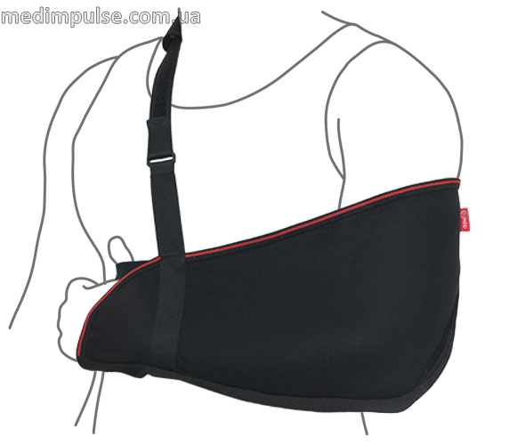 • Бандаж забезпечує надійну фіксацію верхньої кінцівки у функціонально вигідному положенні та розвантажує суглоби.