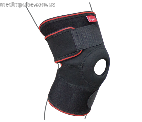 Бандаж на колінний суглоб еластичний в'язаний посилений ReMed R6104 сіро-червоний