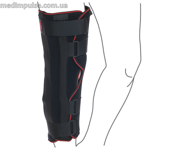 - посилений фіксатор для коліна – накладка із спеціального синтетичного матеріалу з отворами, має ребра жорсткості;