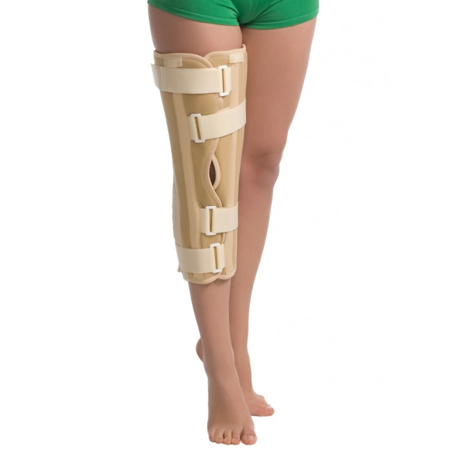 - роз'ємна конструкція наколінника ефективна при обмеженій рухливості суглоба, набряклості суглоба та при підвищеній масі тіла