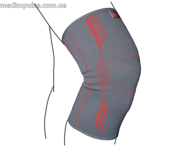 - Бандаж забезпечує середню фіксацію колінного суглоба, знижує навантаження під час стояння та ходьби.