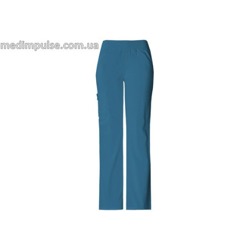 : Штани прямого силуету з двома бічними кишенями Блакитного кольору. На правій половині штанів, в області коліна, розташована накладна кишеня із застібкою, для додаткової безпеки. Верхній зріз штанів оброблений широким поясом з еластичною стрічкою для зручності та комфорту. Внутрішній шов 34.