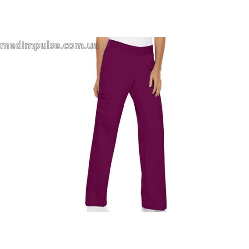 : Штани прямого силуету з двома бічними кишенями Винний колір. На правій половині штанів, в області коліна, розташована накладна кишеня із застібкою, для додаткової безпеки. Верхній зріз штанів оброблений широким поясом з еластичною стрічкою для зручності та комфорту.