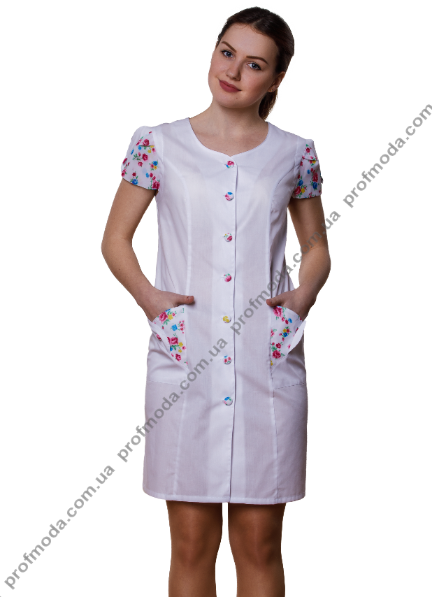 Класичний медичний халат напівприлеглого силуету з довгим рукавом.