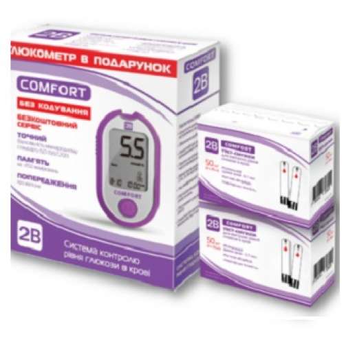 Глюкометр 2В Comfort + 100 тест-смужок у комплекті (7640162326643)