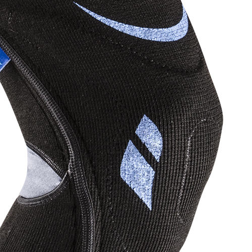 Фіксація на нозі Колінна чашечка | Нероз'ємна конструкція панчішного типу. Система, що запобігає зісковзування брейсу. Закрита (чорний)/є модифікація з відкритою (білий) |
