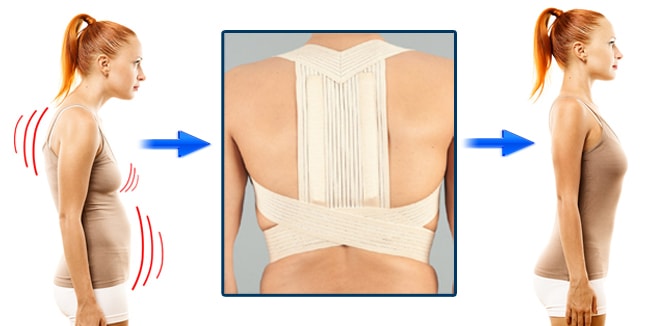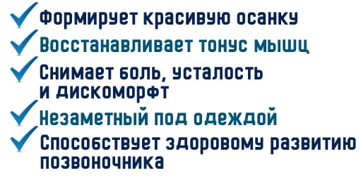 Додаткова постуральна підтримка передньої частини попереку виконується завдяки еластичним ременям на плечі, що проходять в області пахв і з'єднуються спереду нижче грудей.