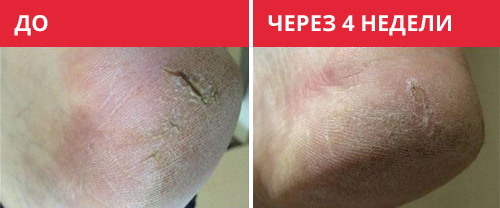 Серйозні рани та тріщини шкіри на п'ятах були повністю зцілені після 4 тижнів застосування крему