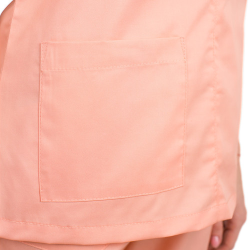 Жіночий костюм Жасмин з потайною блискавкою на спині, рукави-ліхтарики, виріз-човник з цікавими деталями, одна накладна кишеня. У костюмі нові штани прямого крою із накладними кишенями.