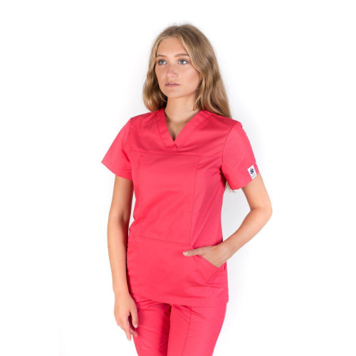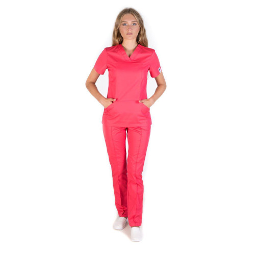 Костюм пошитий з урахуванням усіх вимог до медичного одягу: зручна посадка, функціональні кишені спереду, короткий рукав. Склад тканини: 35% бавовна, 65% поліестер. Розмірний ряд із 40 по 54.