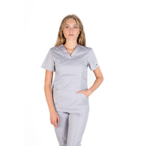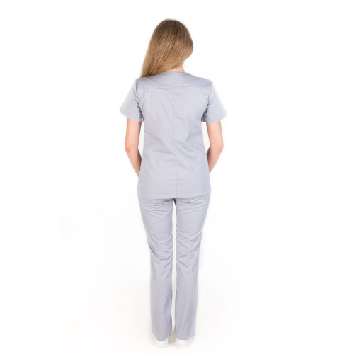 Костюм пошитий з урахуванням усіх вимог до медичного одягу: зручна посадка, функціональні кишені спереду, короткий рукав. Склад тканини: 35% бавовна, 65% поліестер. Розмірний ряд із 40 по 54.