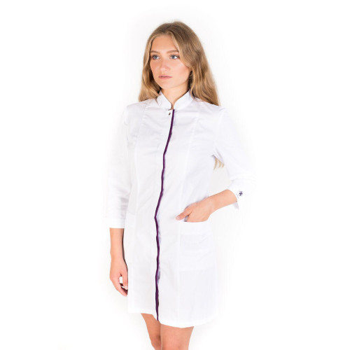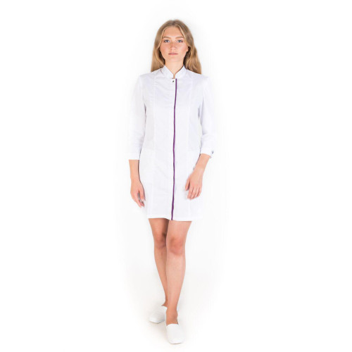 Медичний халат Сакура білий-фіолетовий