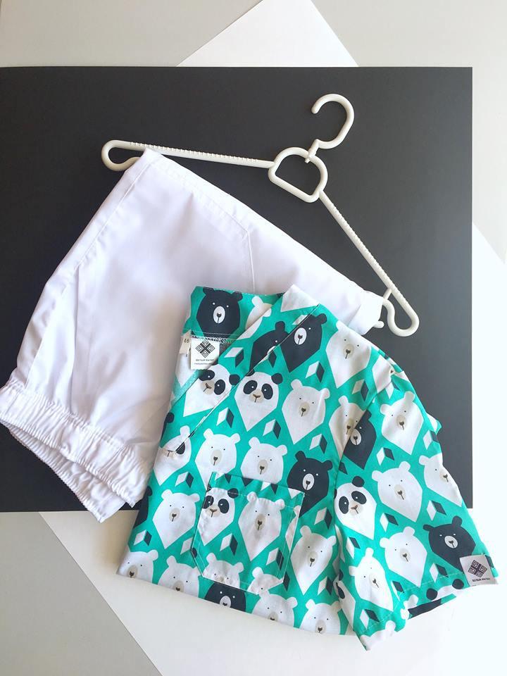 Склад тканини: 65% поліестер, 35% бавовна. Рукав короткий. Кофта має дві передні кишені. Комірець стійка. Штани з кишенями. Кольори: білий-блакитний, марсала-шампань, оливка-сірий, пісок-шоколад, синій-блакитний.