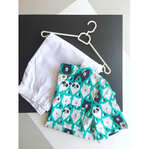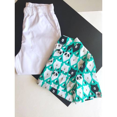 Медичний чоловічий костюм Граніт принт ведмедика зелений-білий 46р.