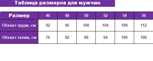 | Розмір чоловічого одягу (RU) | 46 |