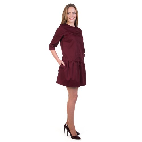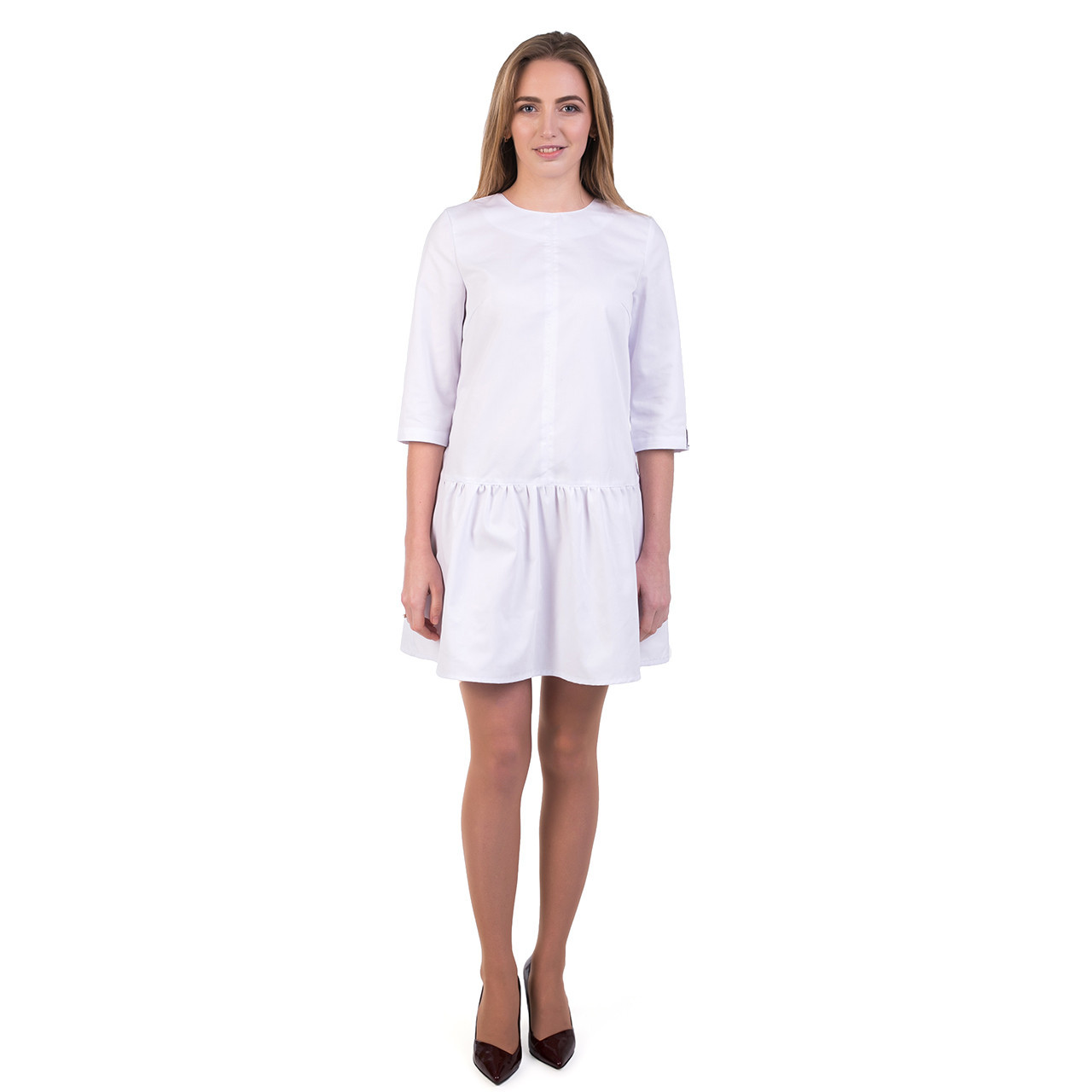Медичне жіноче плаття. Тканина: 35% - бавовна, 65% - поліестер. Щільність тканини 165г/м2. Має 2 кишені. Четвертий рукавчик. Позаду застібка-блискавка. Розміри: 40-48.