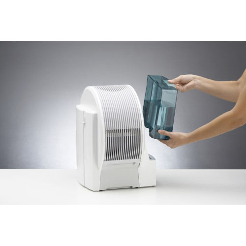 Зволоження та очищення повітря здійснюється без використання змінних фільтрів. Їх роль виконує унікальна запатентована система пластикових дисків з поверхнею, що адсорбує. 21 диски особливої конструкції служать одночасно і очищаючими та зволожуючими елементами. Обертаючись, як лопаті вітряка, вони безперервно омиваються водою в піддоні. Проходячи між дисками, сухе повітря насичується вологою, що бракує, що забезпечує підтримку природного рівня вологості в приміщенні. Частинки пилу та інші небажані домішки осідають на поверхні дисків і потім змиваються водою в піддон.