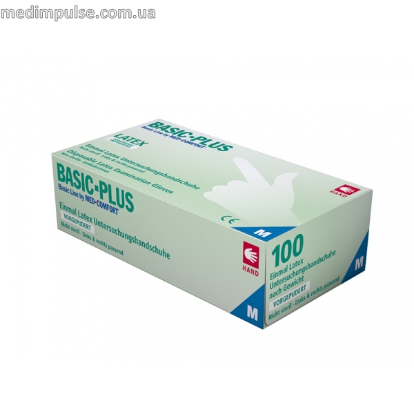 Рукавички МР MedPlast нестерильні латексні оглядові з пудрою, розміри M,L