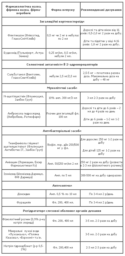 Перелік зареєстрованих в Україні лікарських засобів для використання в небулайзерній терапії