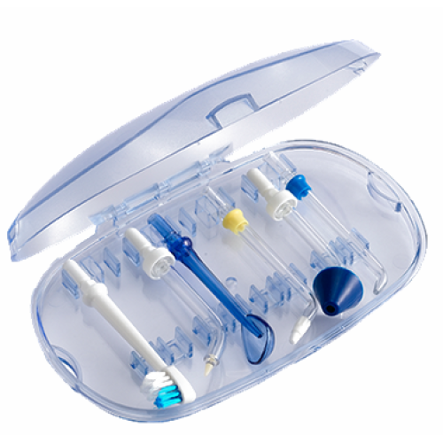 У комплектацію іригатора входять 11 насадок, які компактно розміщуються у пеналі на кришці корпусу.