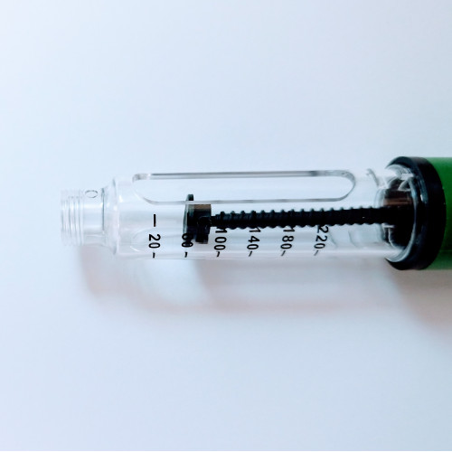• Індикатор-контролер залишкової дози дозволяє розрахувати та ввести правильну дозу препарату, навіть якщо він закінчився у картриджі під час ін'єкції.