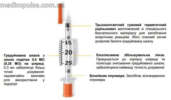 Поділ 2 інсулінової одиниці + збільшувальна лінза .