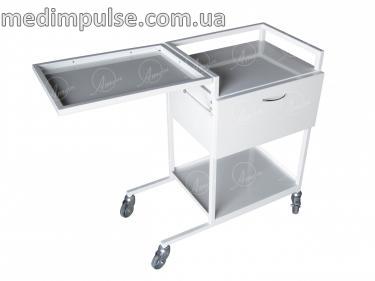 Столик анестезіолога СТ-А призначений для розміщення витратних матеріалів, медикаментів та інструментів. У верхній частині металевого каркаса з полімерним покриттям, встановленого на коліщатка з гальмами, розташовуються два ящики. Над ящиками та в нижній частині каркаса розташовані дві полиці, що мають з трьох сторін огорожі, верхні з яких одночасно виконують функцію ручок для переміщення столика.