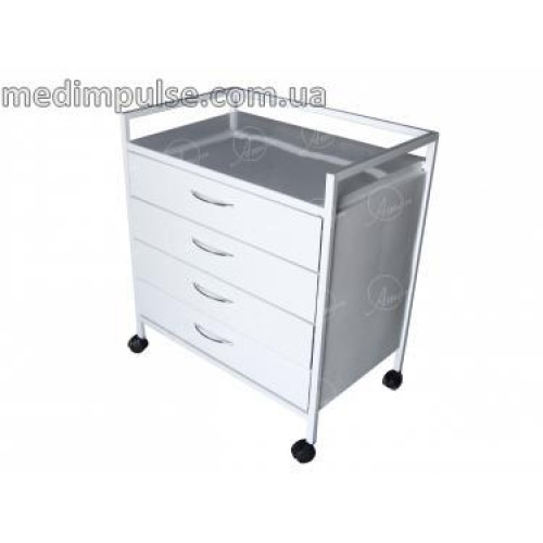 Столик-тумба СТ-Т - призначений для розміщення витратних матеріалів, медикаментів та інструментів. Столик виконаний у вигляді металевого каркаса з полімерним покриттям, встановленим на коліщатка з гальмами. У каркасі розташовуються 4 ящики. Над ящиками розташована полиця. З трьох боків полиця має огорожу, що одночасно виконує функцію ручок для переміщення столика. Габаритні розміри 720 х 480 х 800 мм.